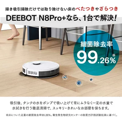 - DEEBOT N8Pro+:水拭き機能付き