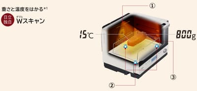 MRO-W1Yの売りの1つが日立独自技術の「Wスキャン調理」です。