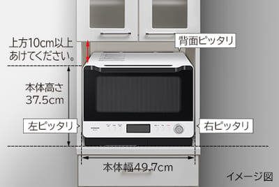 上方だけは10cm以上の空間が必要ですが、極力抑えたスマートなデザインで、左右、背面の空間を配慮する必要がないんです。
