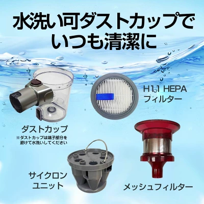 ダストカップも汚れが気になったら水洗いができるので清潔に使えます。