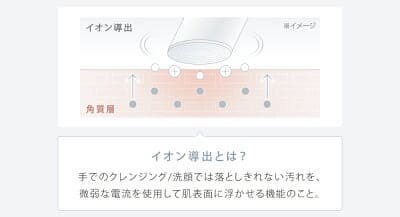 そうすると、手洗いでは落としきれない、お肌の古い角質やほこり、毛穴の汚れやメイク残りもイオンの力で汚れを吸着して、肌表面に浮かせてくれるんです。