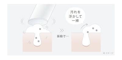 汚れをかき出したり、何度もこすったりせず、振動で汚れを浮かせるので、お肌の表面に負担をかけず、優しく洗い流すことができるんです。