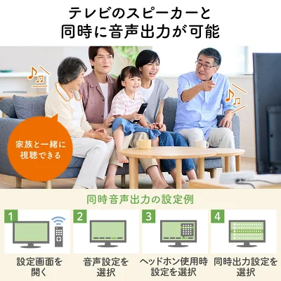 でも、家族で同じ番組を見つつ、家族はテレビのスピーカーから、父だけプラスこのスピーカーという使い方もできるんです。